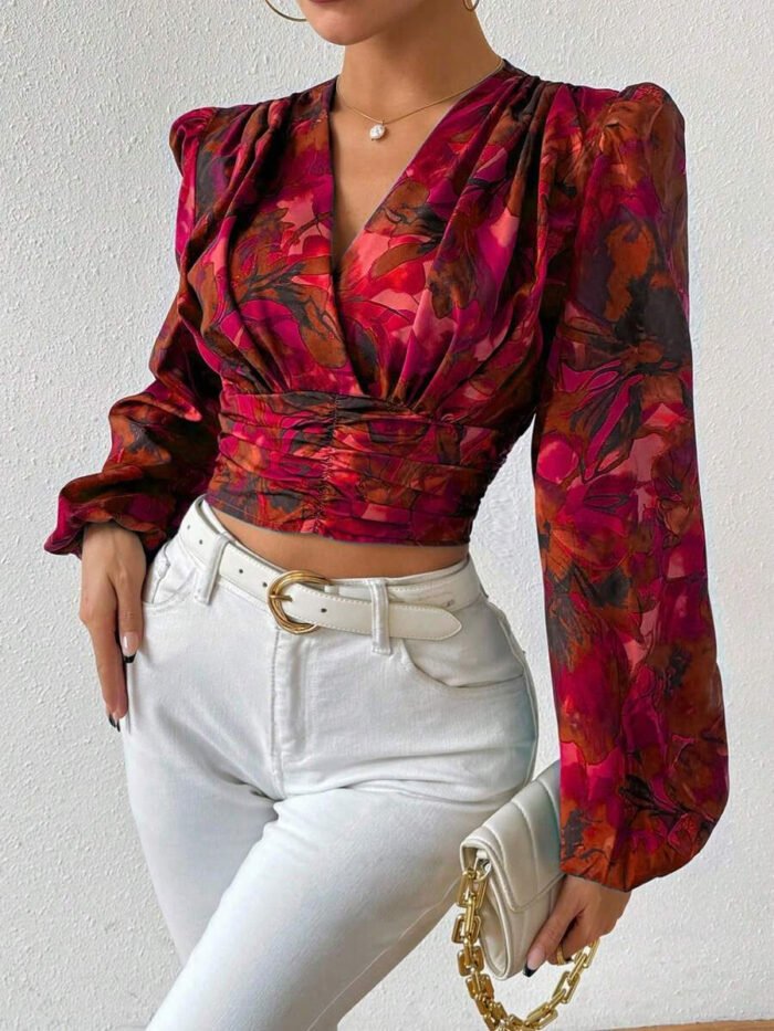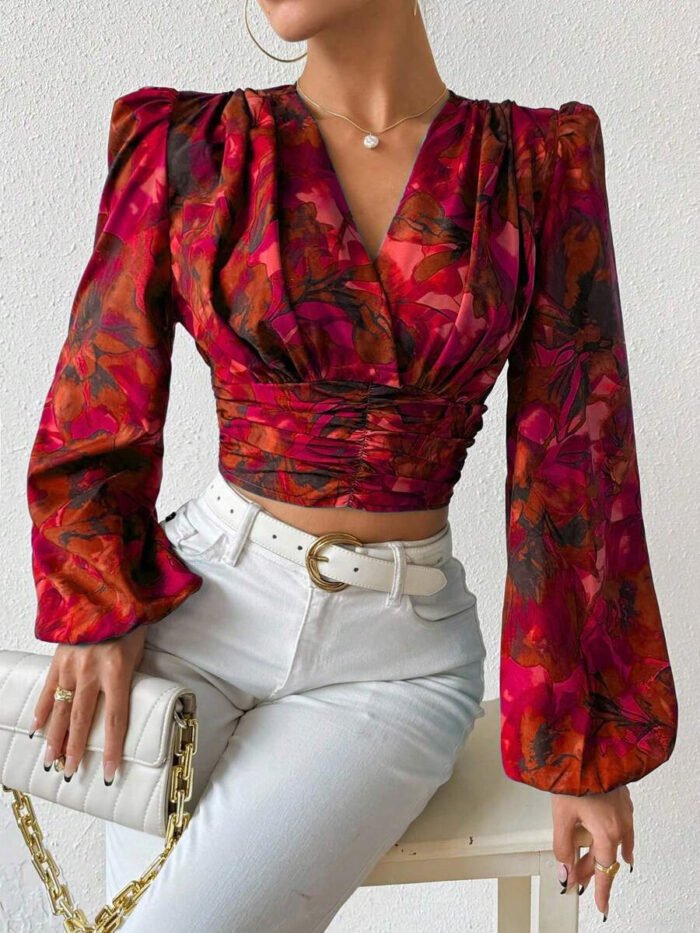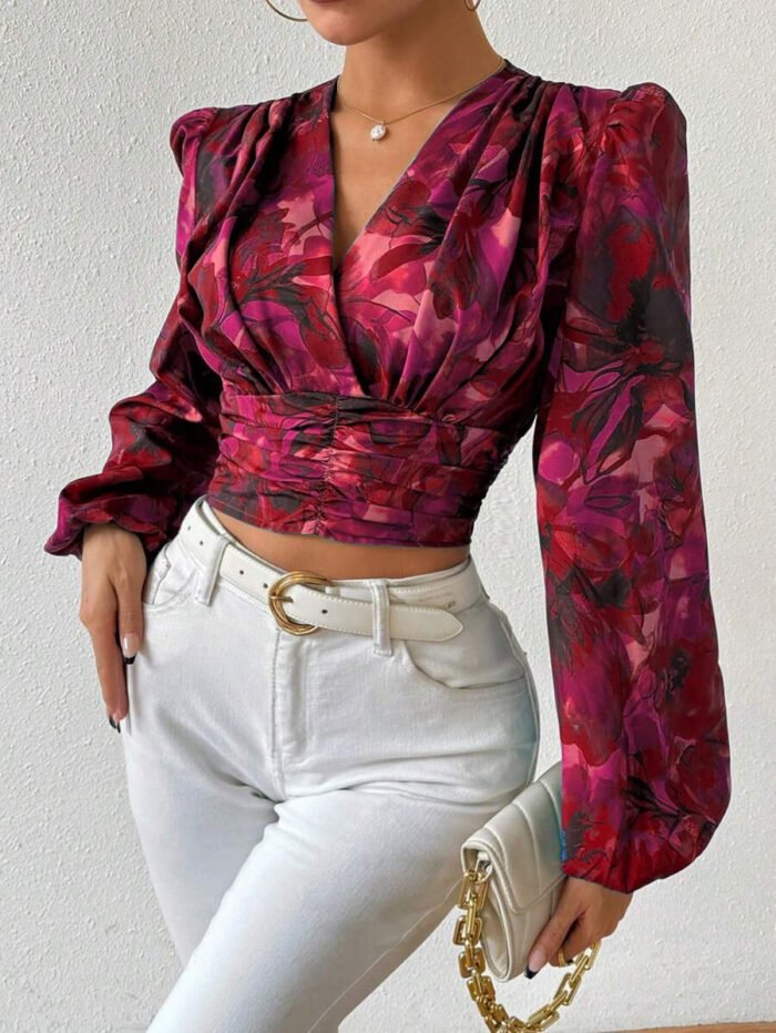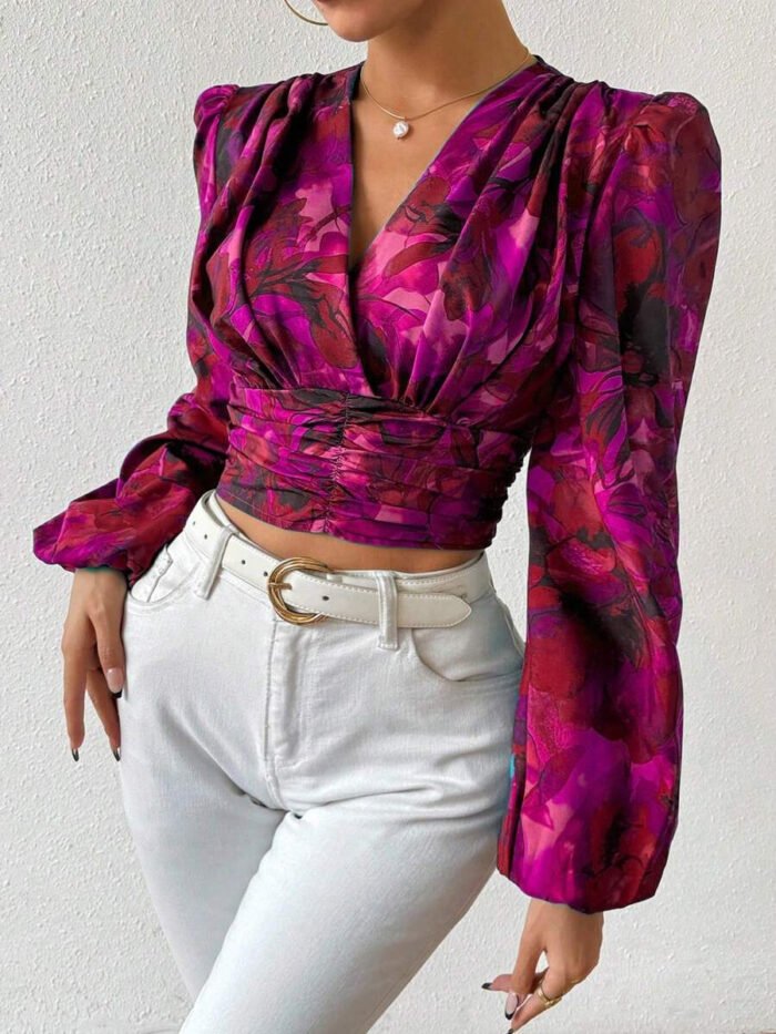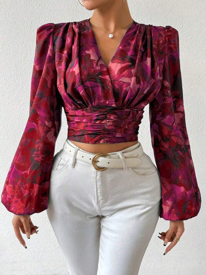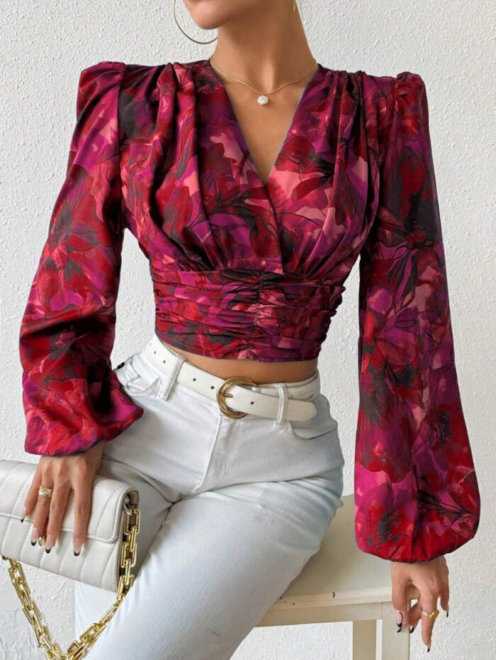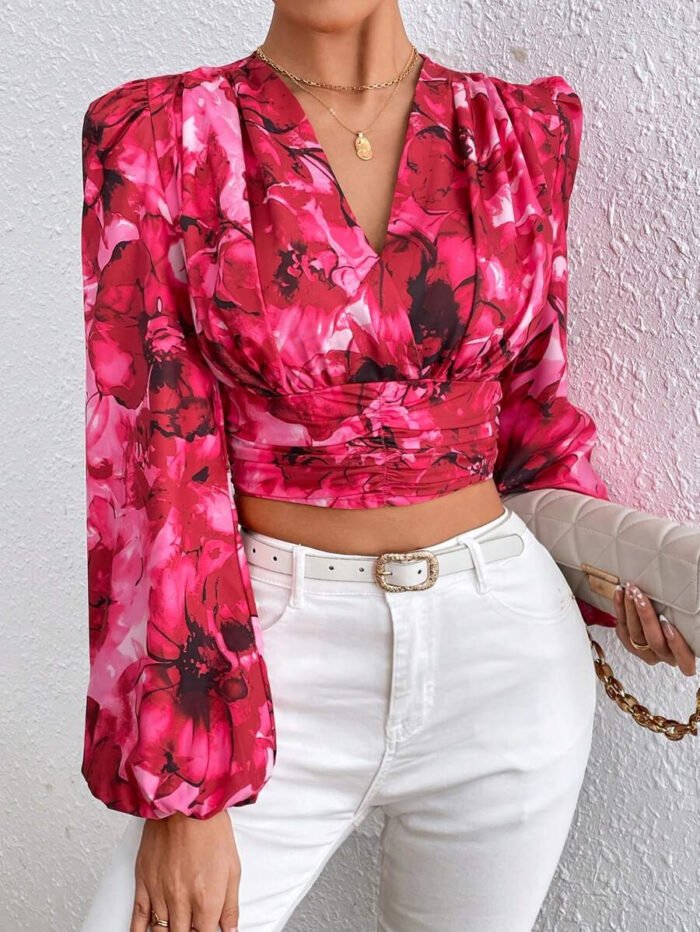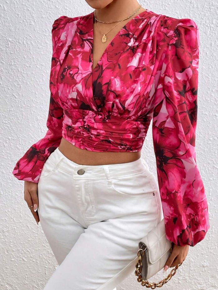 الرئيسية ملابس نسائيه بلايز بلوزة بطبعة زهور