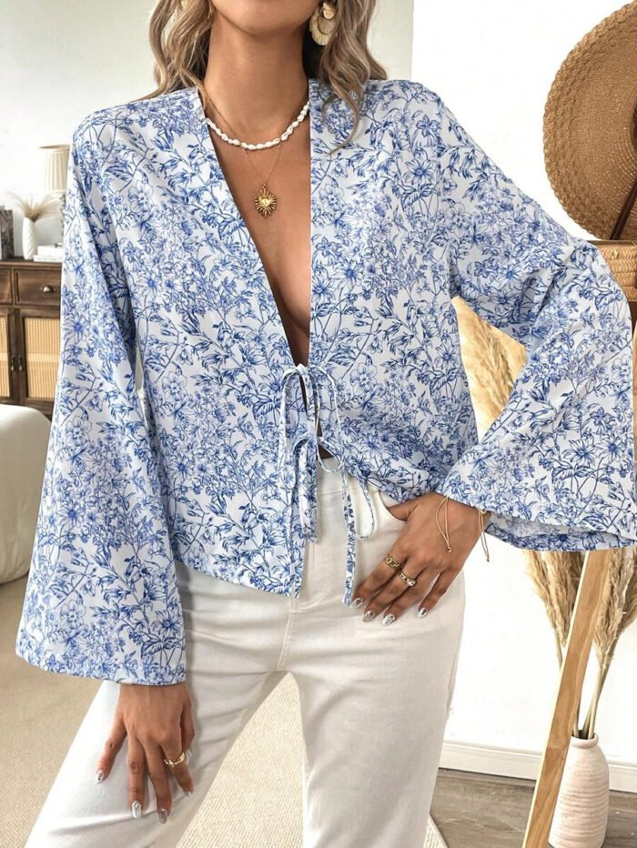 • بلوزه منقوشه نقشة الأزهار تمنحك لمسة طبيعية وأنثوية.
