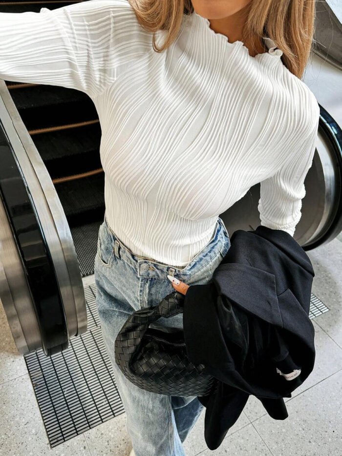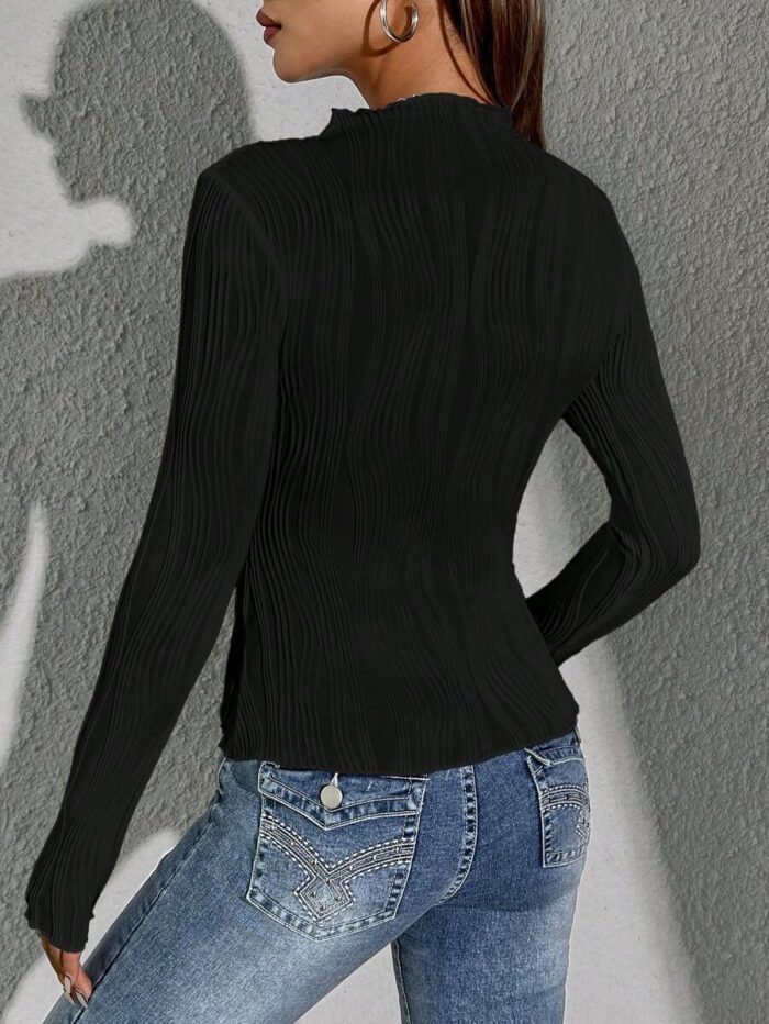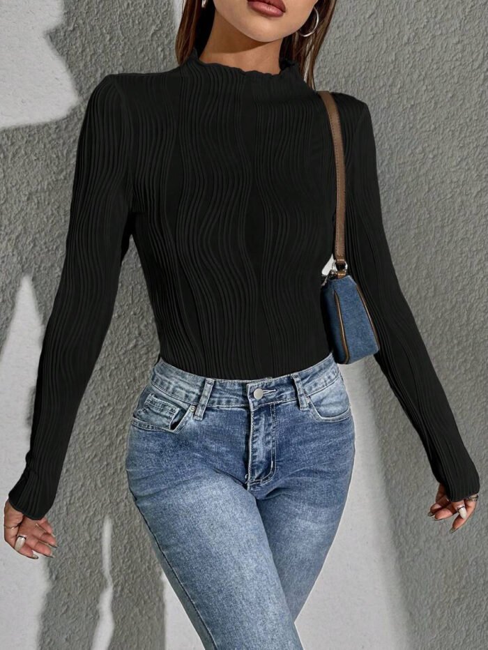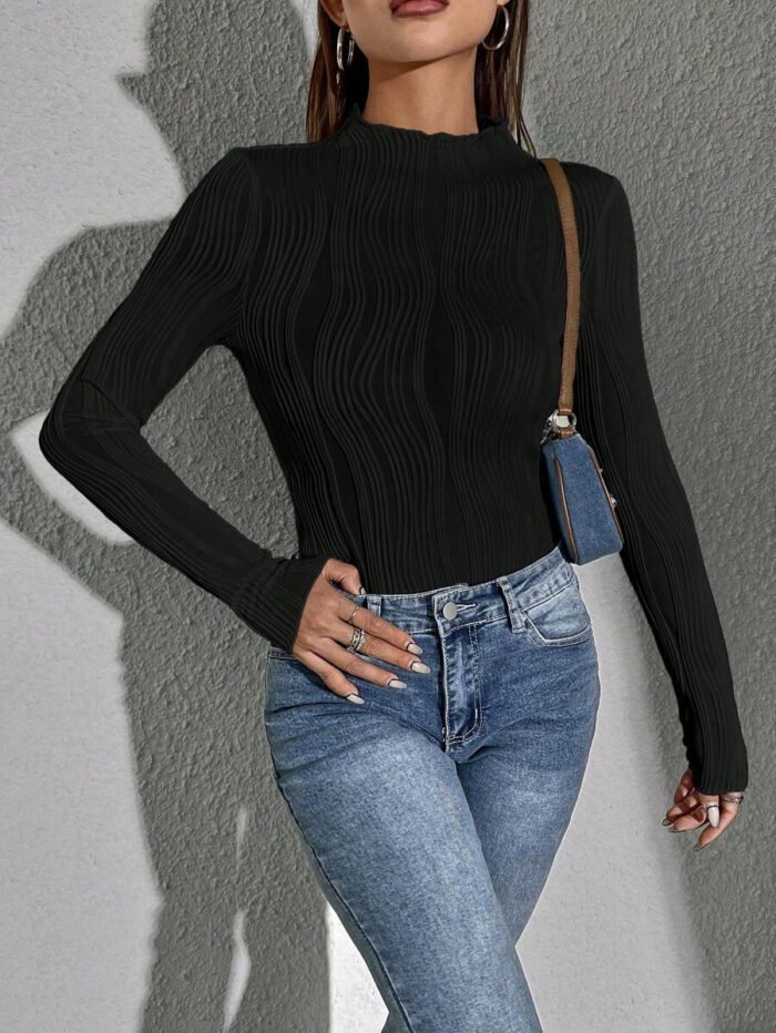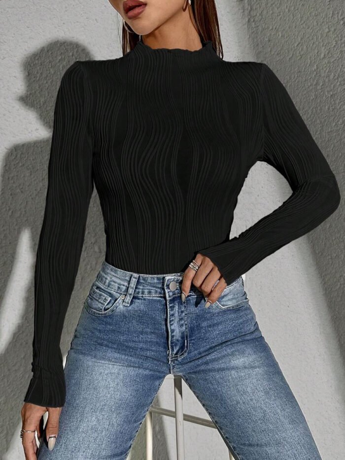 • بلوزه سوداء رقبه تصميم بسيط بلمسة عصرية يجعلك تبدين أنيقة دون مبالغة.