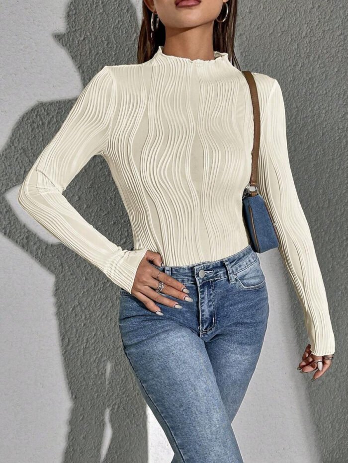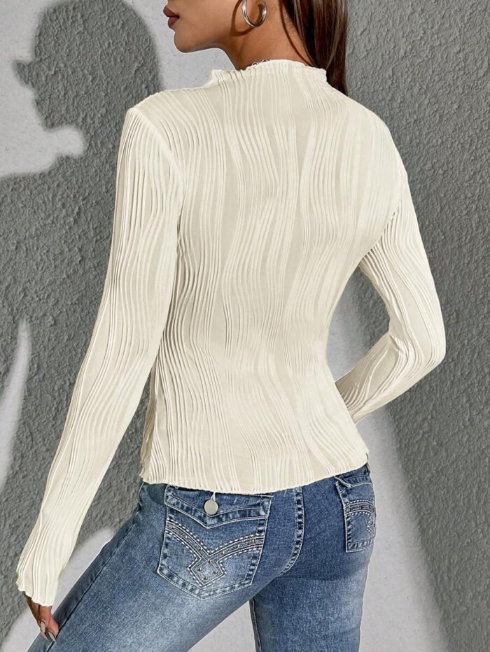 •  ياقة عالية بتفصيل مموّج تضيف لمسة أنيقة ومميزة.