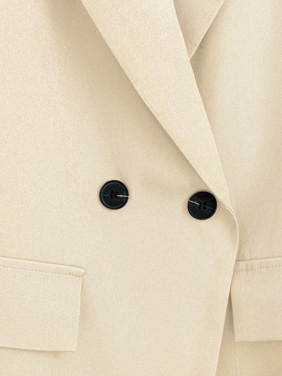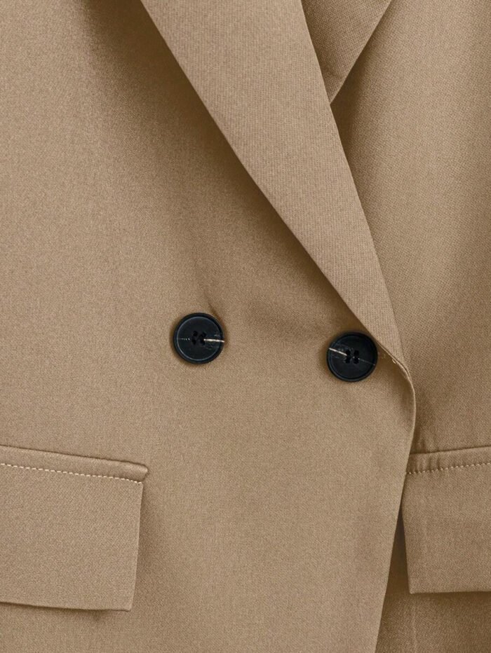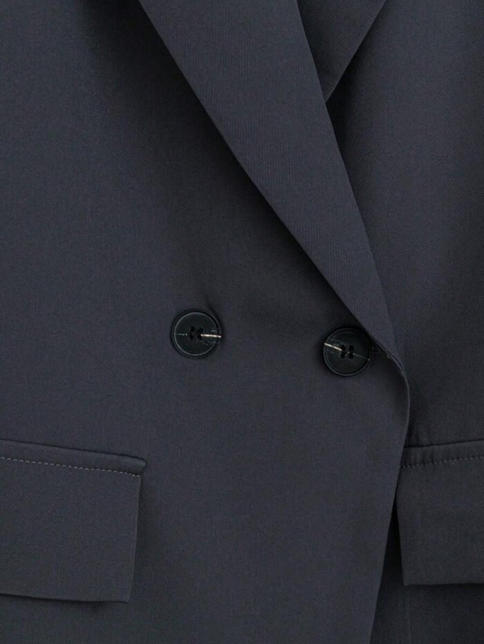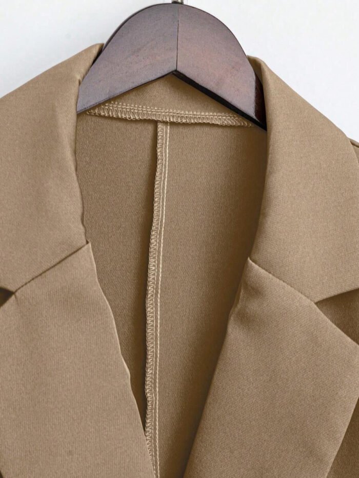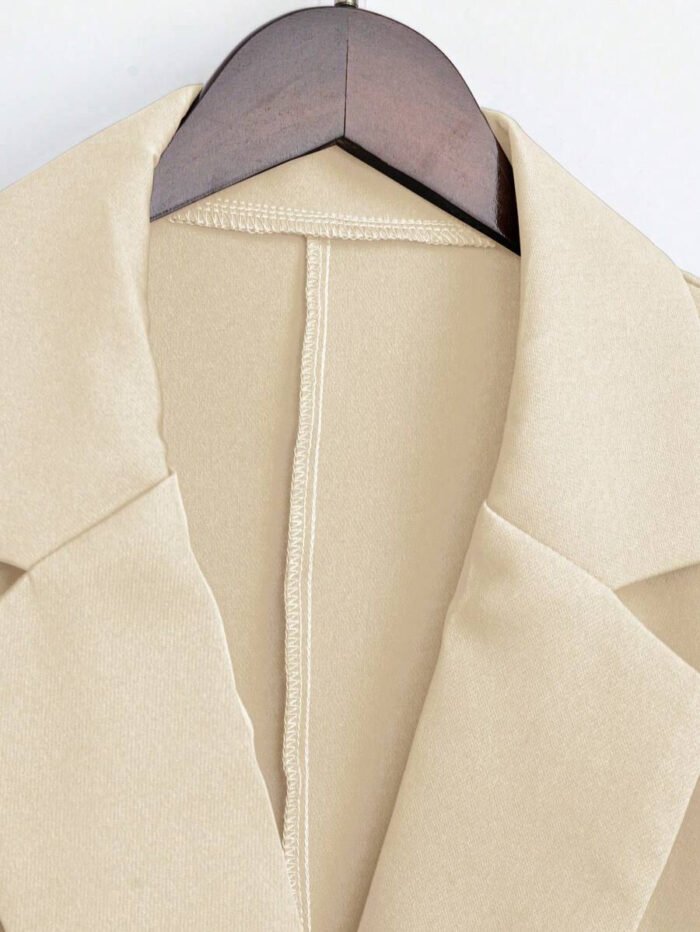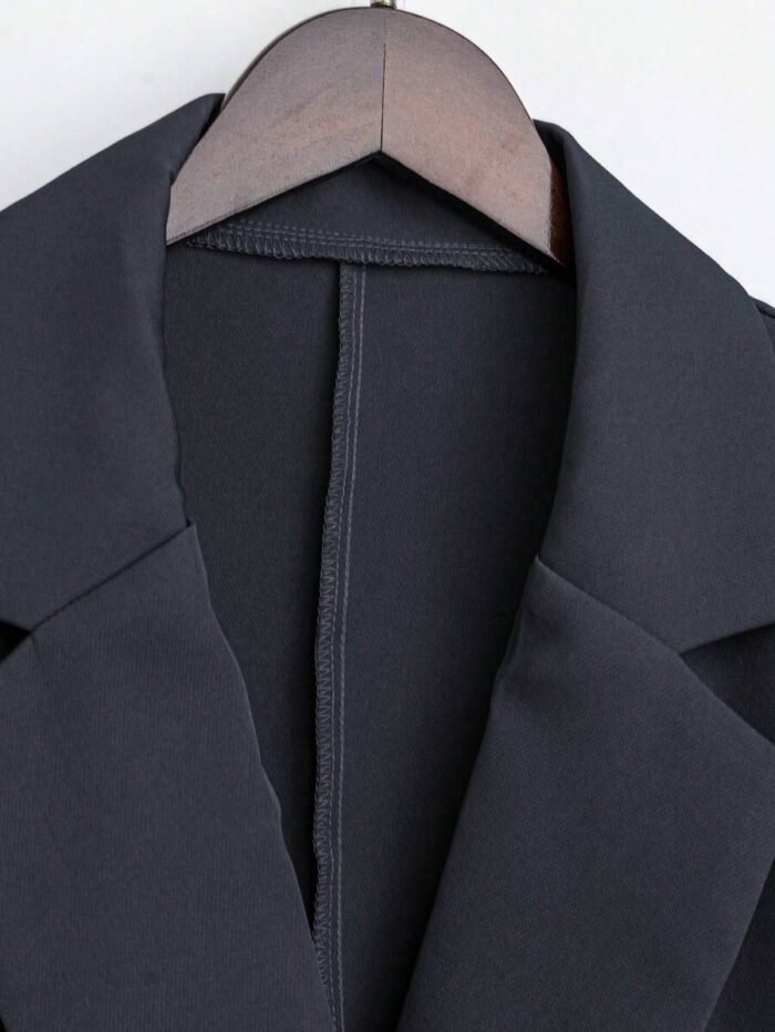 - الحزام يبرز الخصر ويمنح توازنًا رائعًا بين البليزر والتنورة.