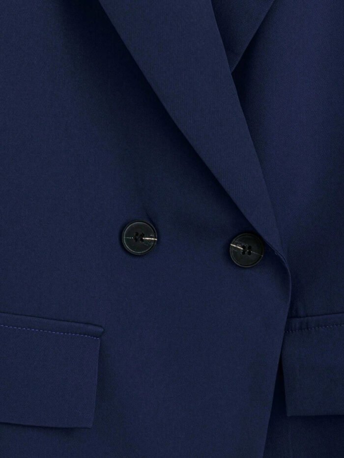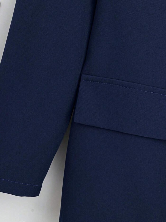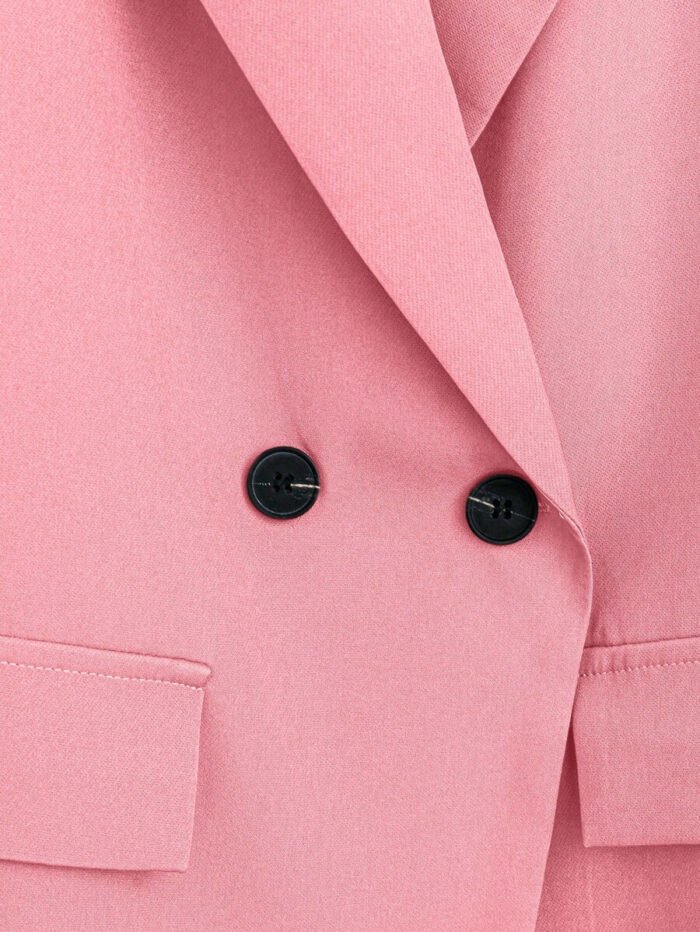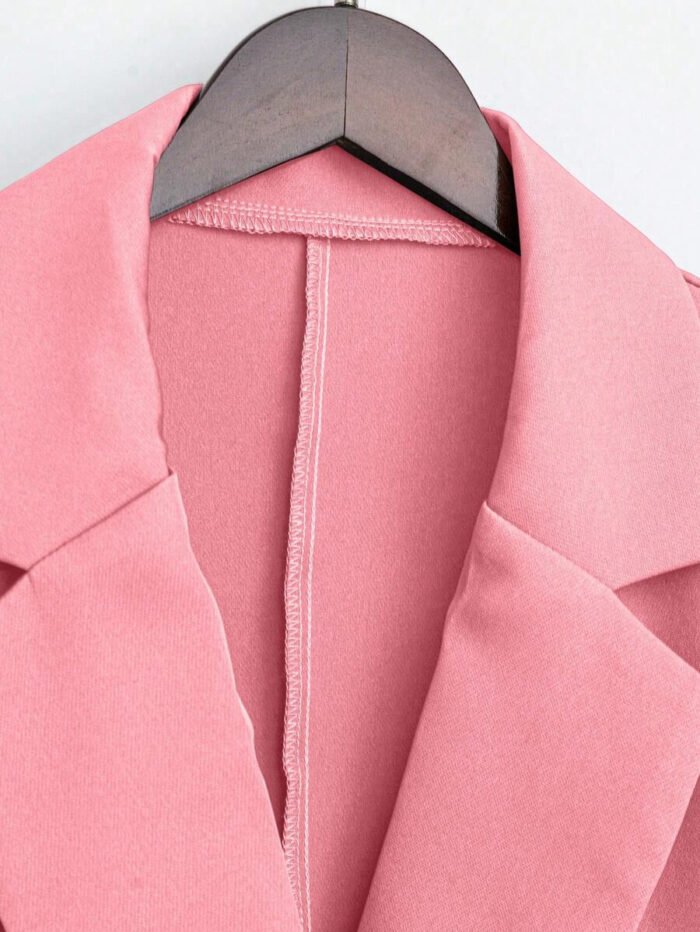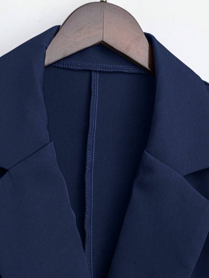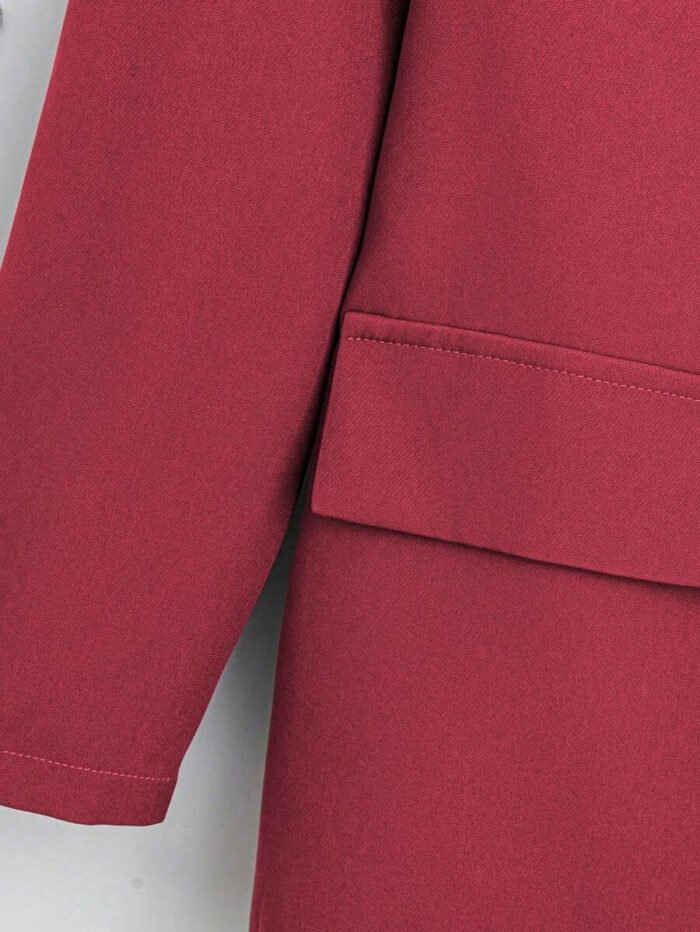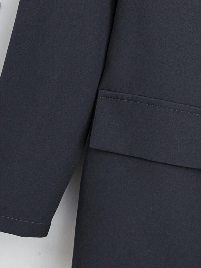 - الإغلاق: البليزر بزر أمامي – التنورة خصر مرن