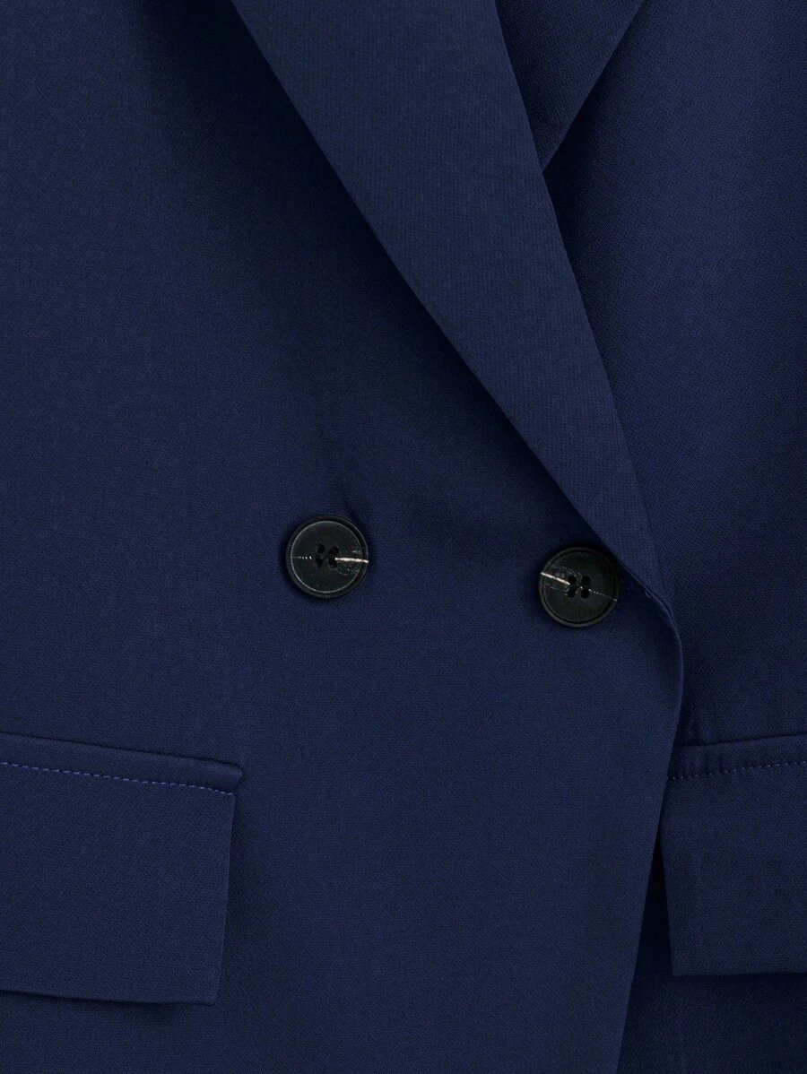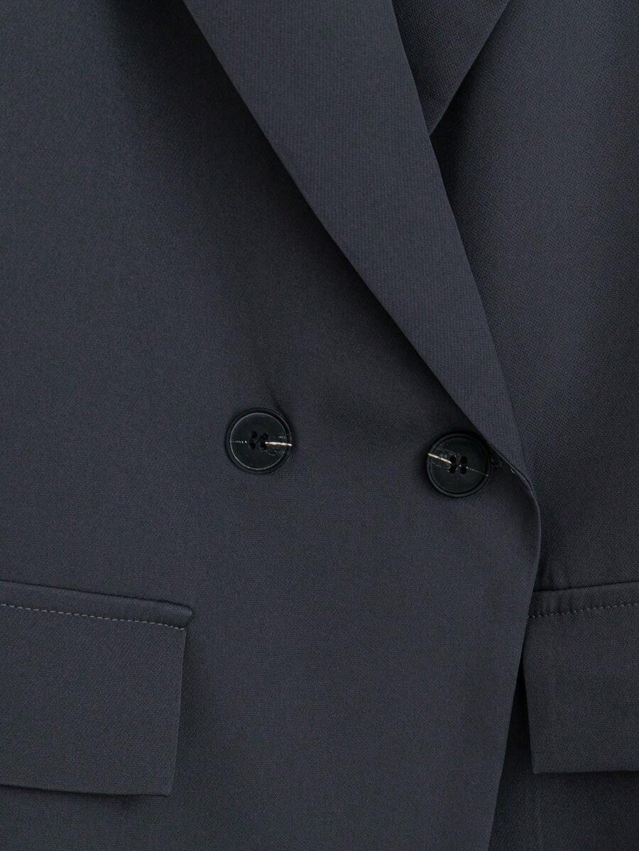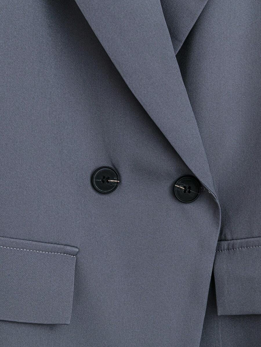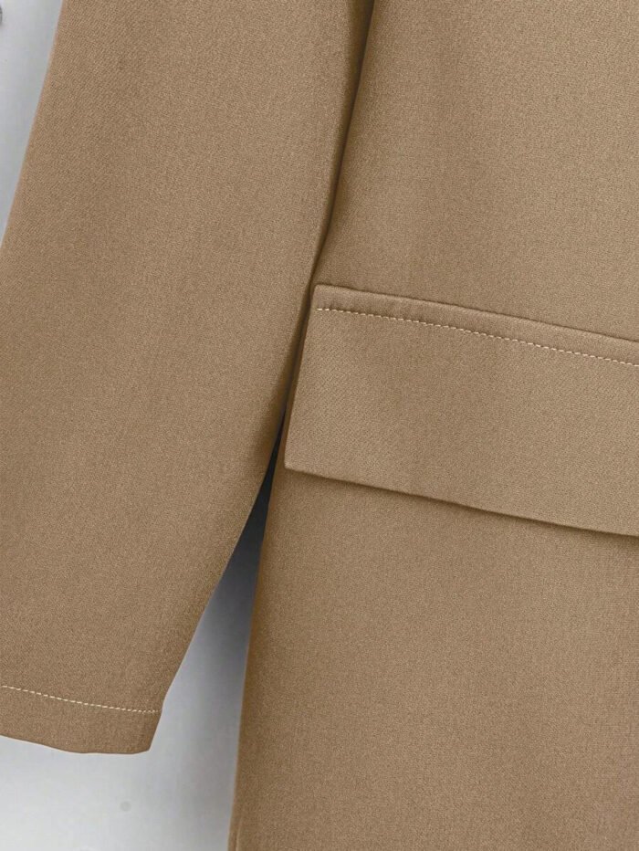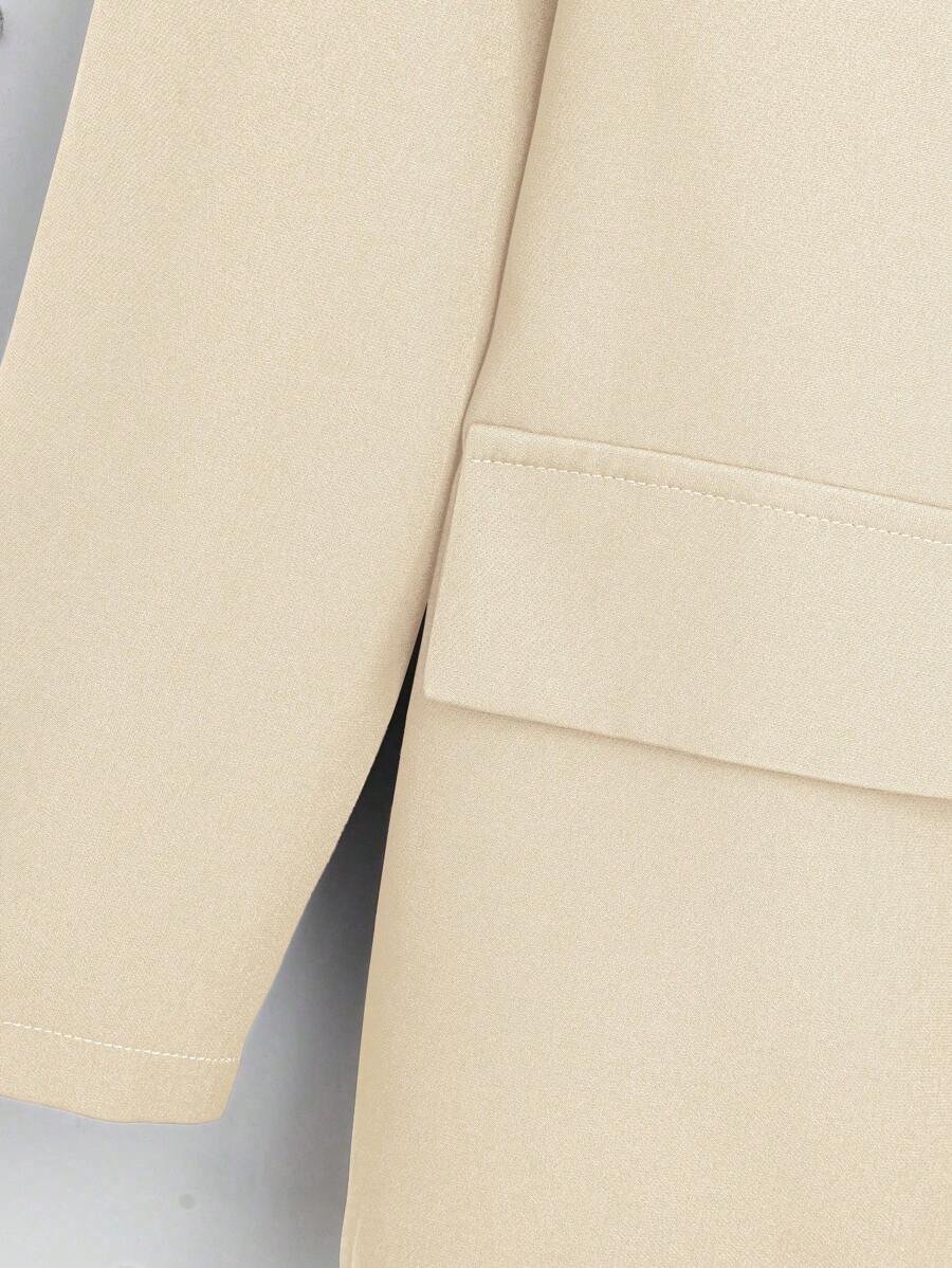 - الإغلاق: البليزر بزر أمامي – التنورة خصر مرن