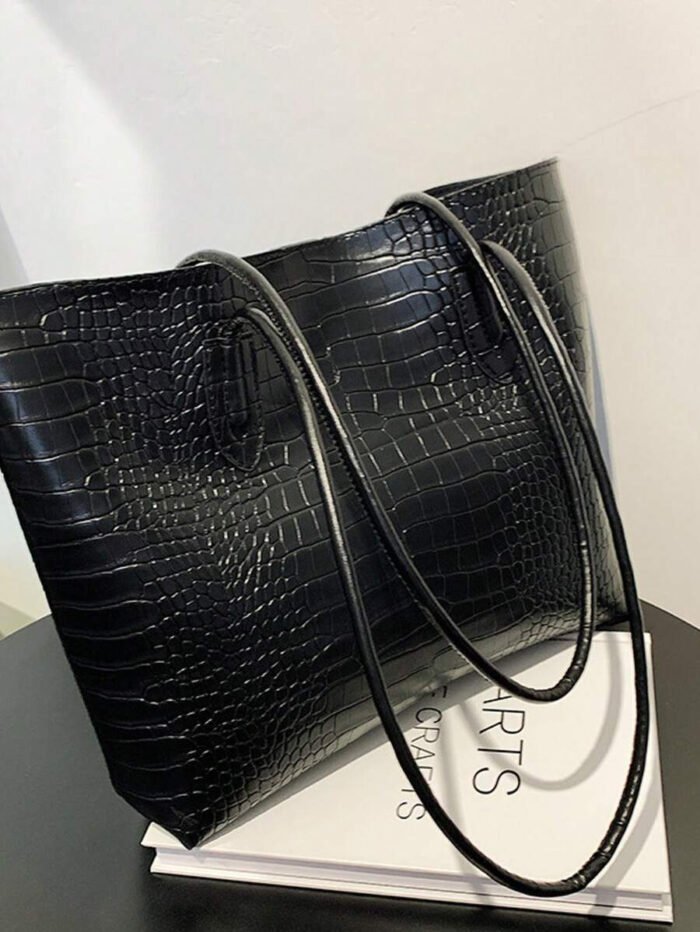 حقيبة جلد تمساح تتميز بتصميمها الجذاب بطبعة التماسيح التي تمنحها مظهرًا فريدًا وفاخرًا، مما يجعلها الإكسسوار المثالي الذي يُضفي لمسة من التميز على أي إطلالة. كما تتمتع الحقيبة بسعة داخلية عالية جدًا، مما يتيح لكِ حمل جميع أغراضك الضرورية وأكثر، سواء كانت كتبًا، أجهزة لوحية، أو مستلزمات يومية، لتكون رفيقتك المثالية في العمل، الجامعة، أو التسوق.
