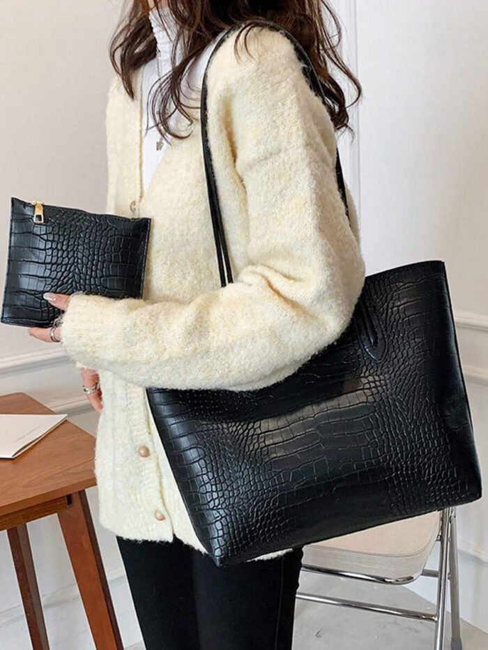 امتلكي حقيبة جلد التمساح الآن ، وأضيفي لمسة فاخرة إلى إطلالتك اليومية.