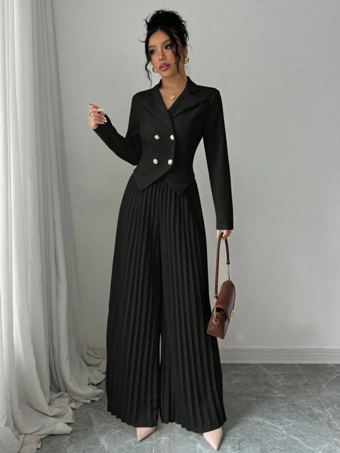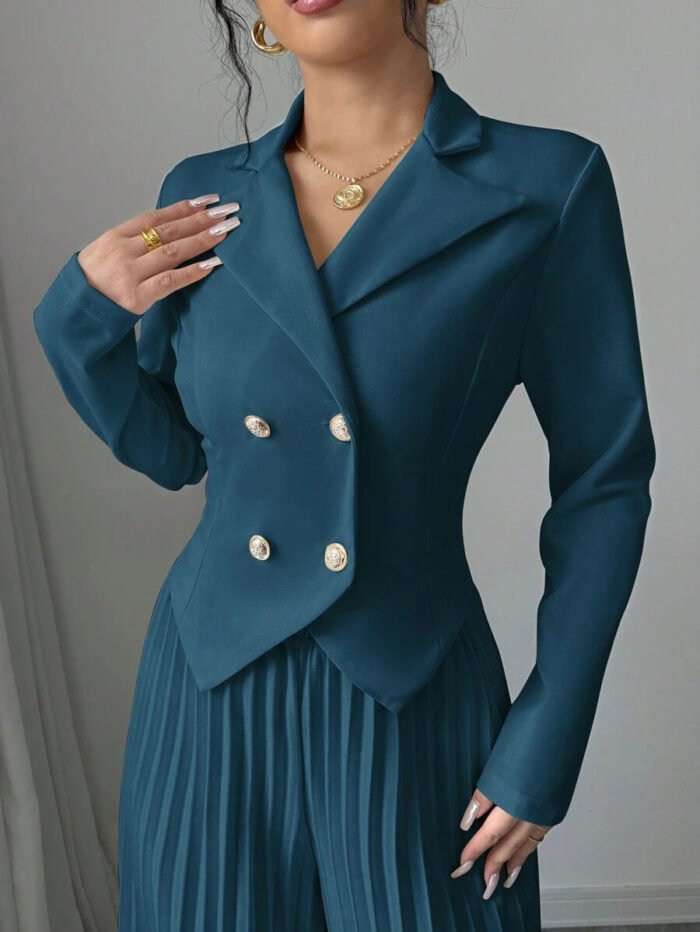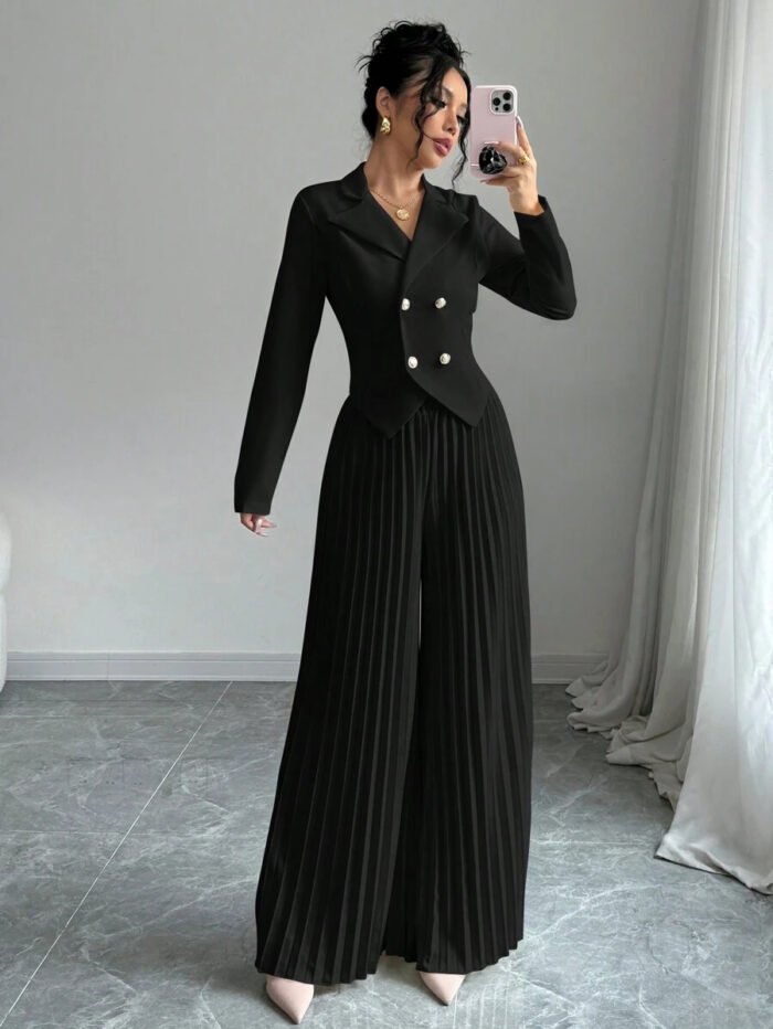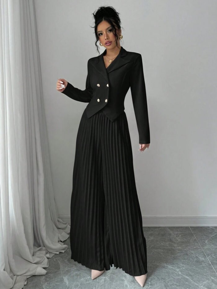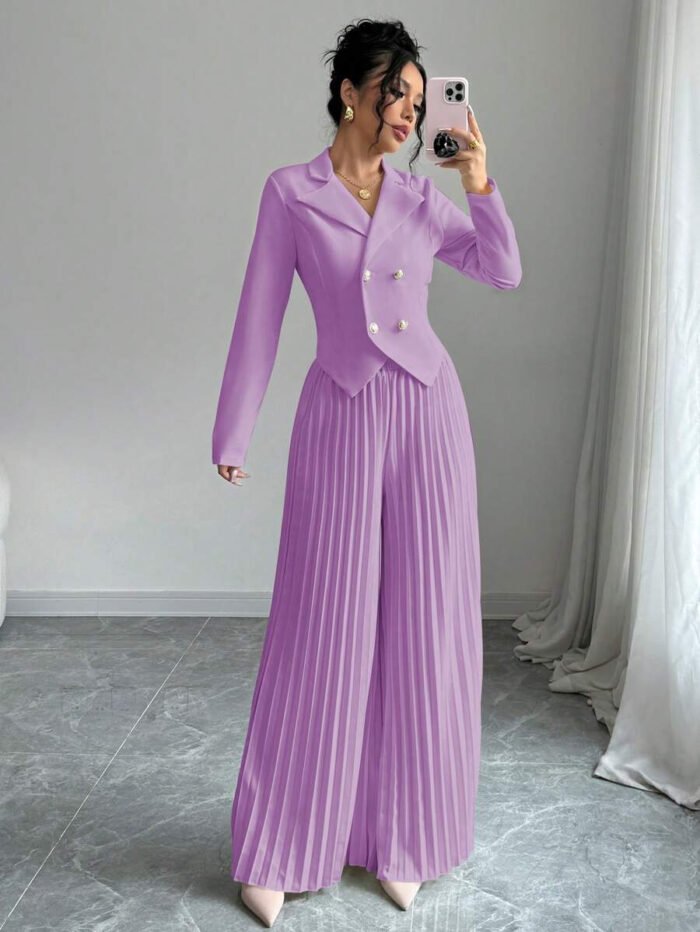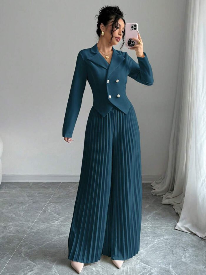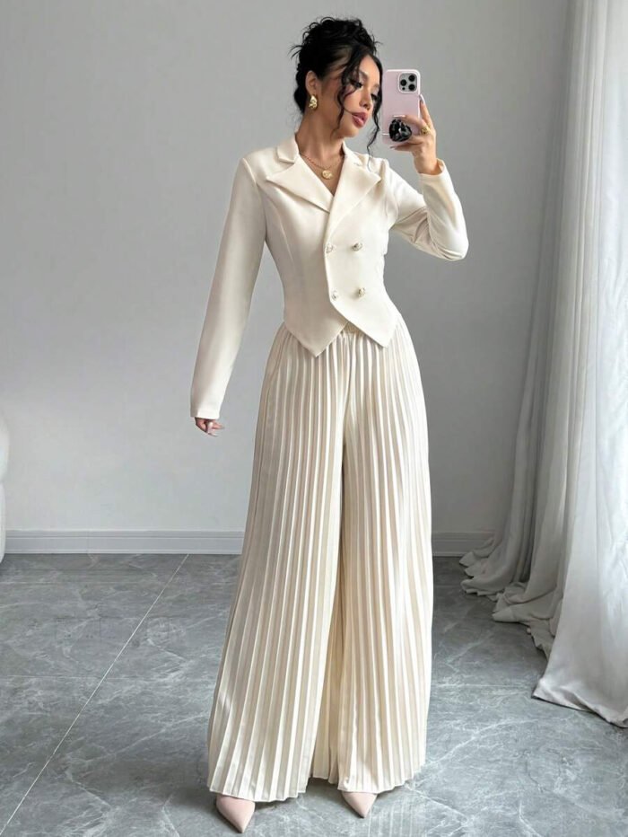 اجعلي إطلالتك متكاملة مع طقم بليزر وبنطلون متوفر حصرياً داخل المملكة العربية السعودية.